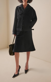 Experimental and minimalistic by design, Balenciaga is also renowned for its uncompromising standard and avant-garde creativity. The brand continues to live and breathe Balenciaga’s inherent elegance, balanced with an edgy, urban aesthetic. Constructed with rigid waxed denim, this skirt is designed for a close fit with a low-rise waist and a flippy flared hem. If you’re partial to double denim, style with the matching jacket. PRODUCT DETAILS - Fall/Winter ‘25 - Zip fly fastening - Composition: denim - Dry clean - Made in Italy