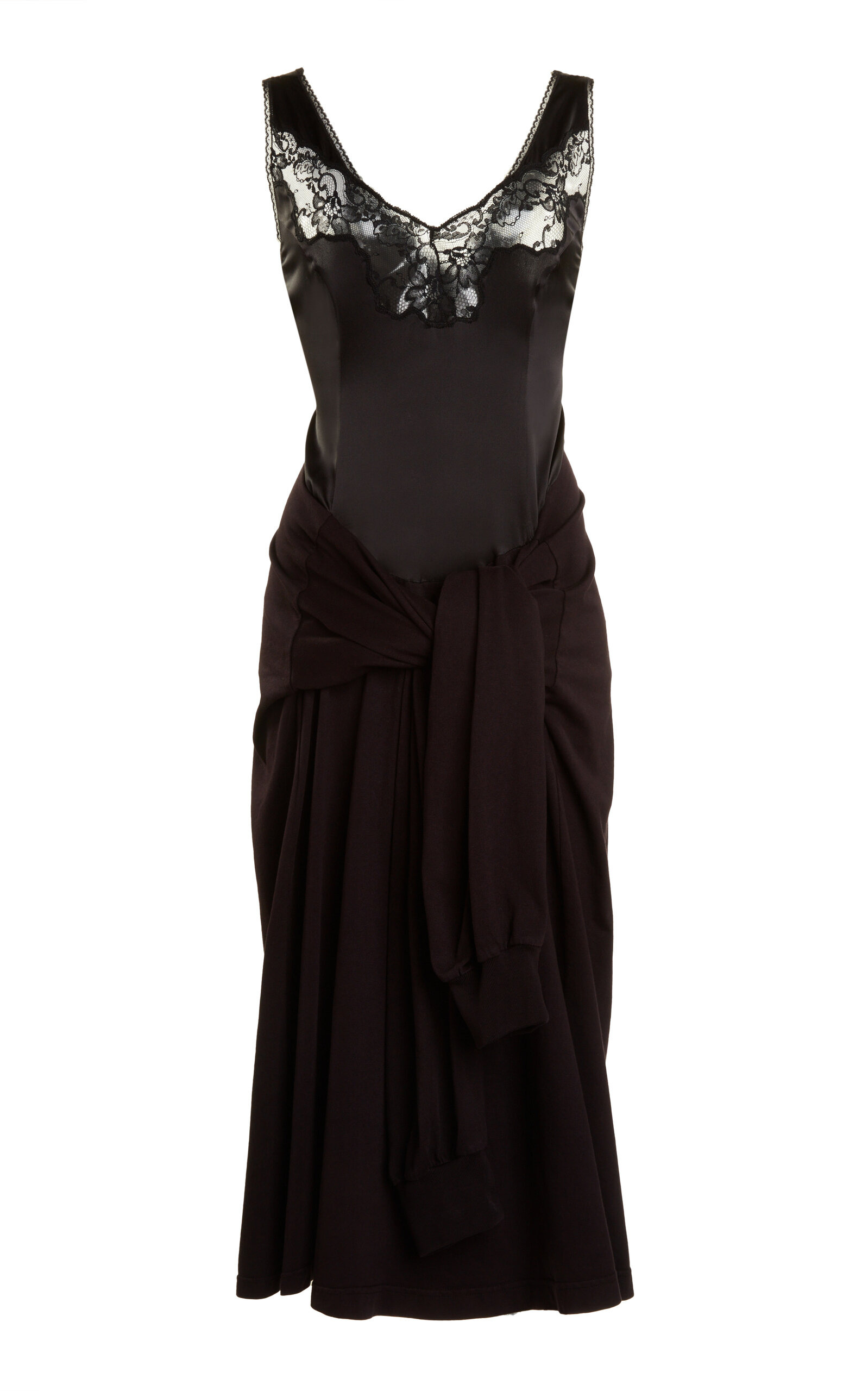 Hybrid Lace-Trimmed Silk Midi Slip Dress black