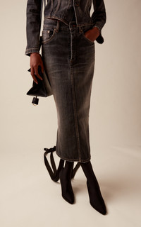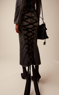 Lace-Up Denim Midi Skirt grey