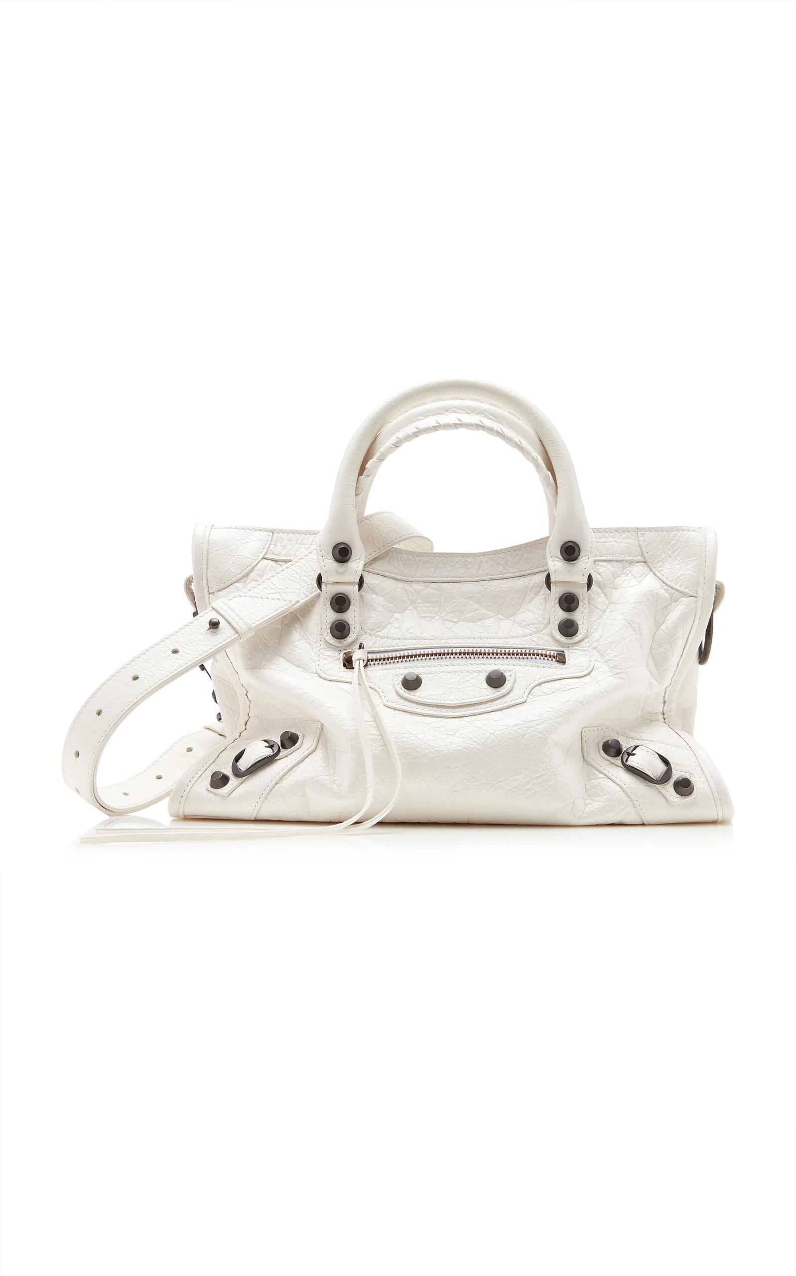 Renowned for their sleek, fluid lines and statement-making garnishes, Balenciaga’s meticulously crafted accessories always have the right amount of edge. Crafted with crinkled Arena lambskin, this miniature ‘Le City’ is spacious with external and internal pockets for smaller essentials. It's rendered ‘Optic White’, a clean shade that works with crisp shirts and alternative tailoring. PRODUCT DETAILS - Detachable shoulder strap - Zip fastening - Composition: 100% lambskin - Designer Color: Optic White - Made in Italy