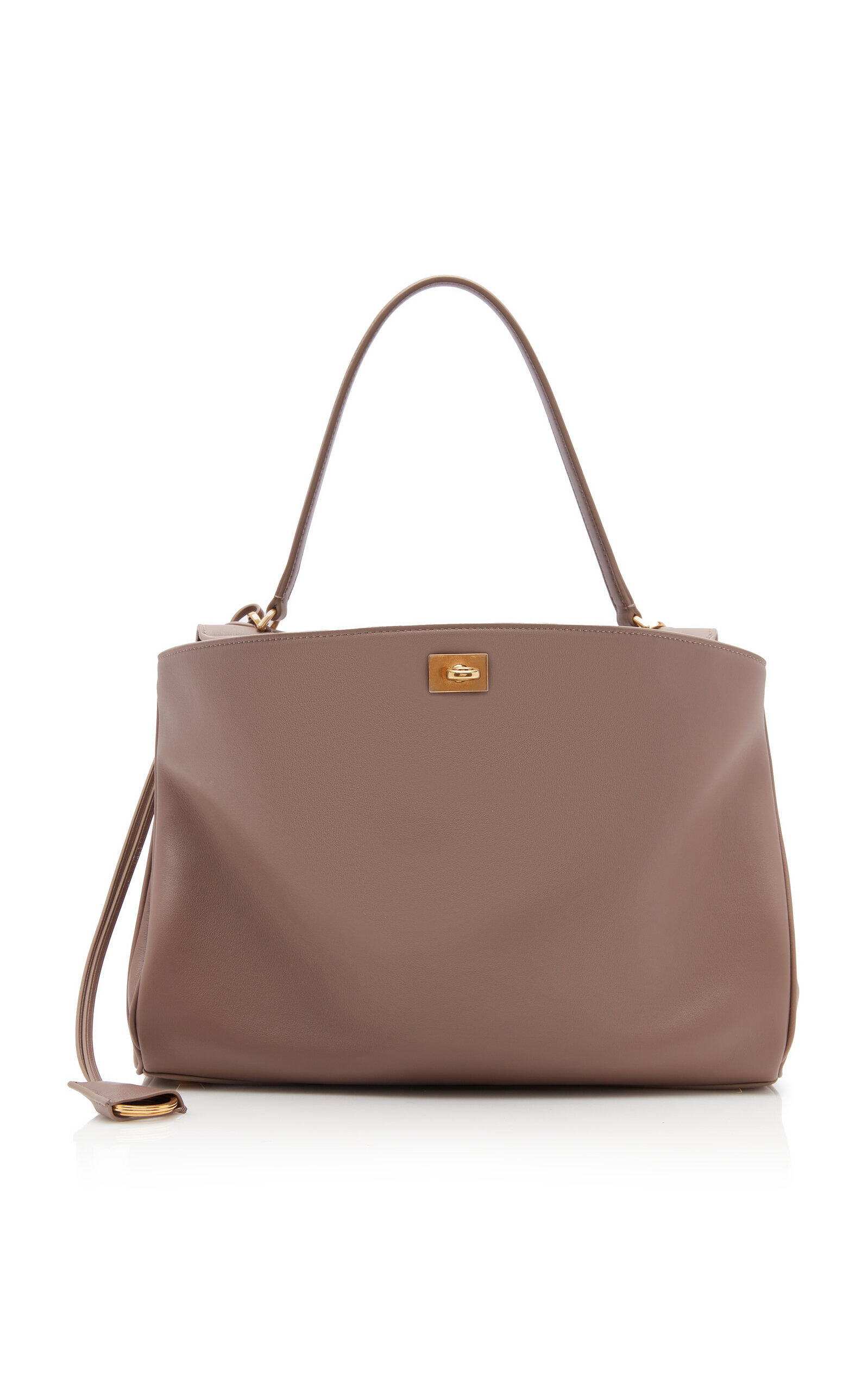 Experimental and minimalistic by design, Balenciaga is also renowned for its uncompromising standard and avant-garde creativity. With Creative Director Georgian designer Demna Gvasalia at its helm, the brand continues to live and breathe Balenciaga’s inherent elegance, balanced with the designer’s edgy, urban aesthetic. The 'Rodeo' bag has a classic flap silhouette with a gusseted two-compartment design made from smooth calfskin. It has two optional turn-lock closures so you can decide how slouchy you want to style it. Keep your phone or wallet close at hand with the back slip pockets and keep your keys secure with the covered metal key ring. PRODUCT DETAILS - Carry by the top handle or sling over the shoulder with the removable strap - Turn lock fastening - Composition: calfskin leather - Made in Italy SIZE & FIT - This item measures approximately 11 x 35 x 23.5 cm