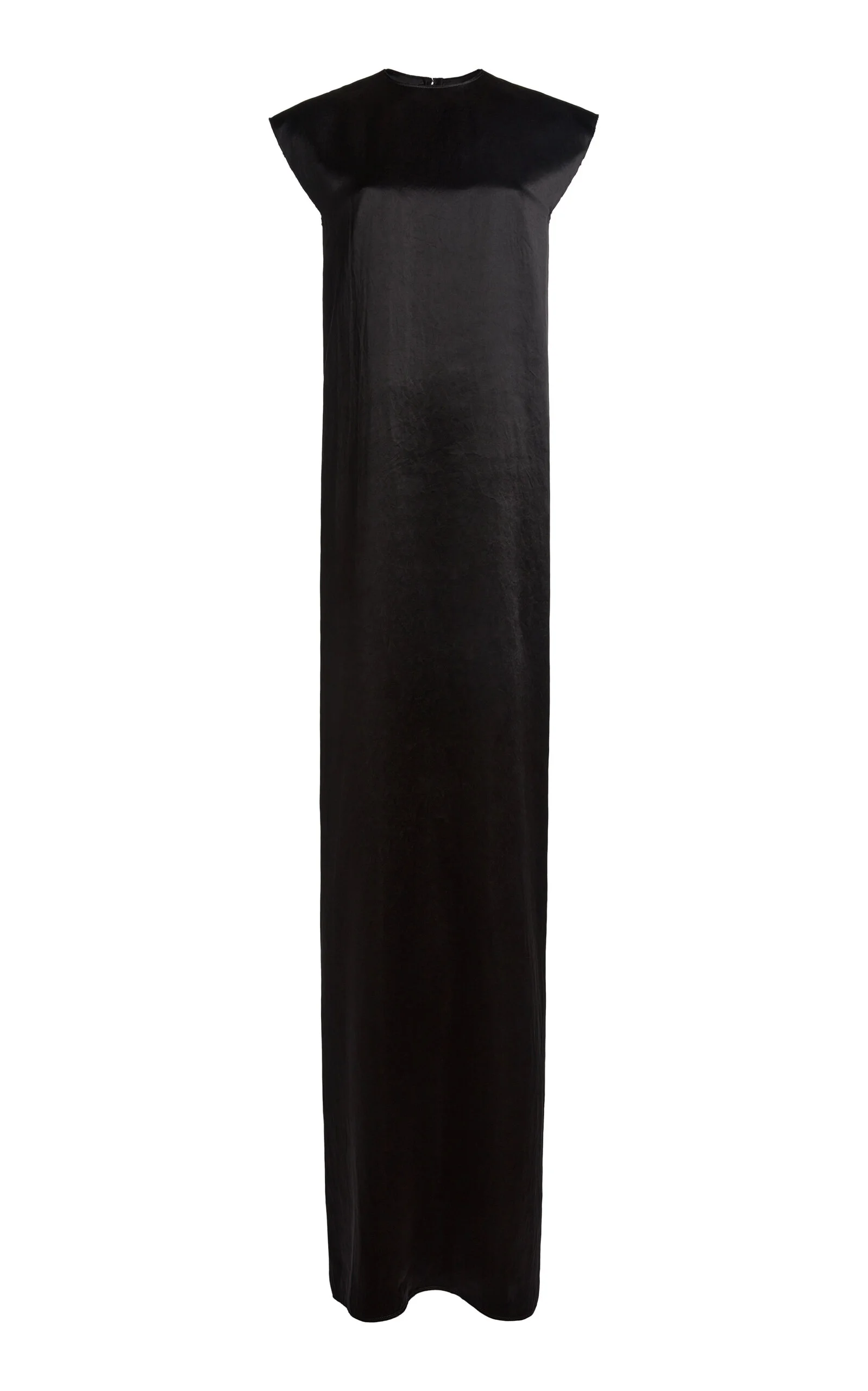 Experimental and minimalistic by design, Balenciaga is renowned for its uncompromising standard and avant-garde creativity. This season is a study of a complete wardrobe, with a focus on comfort. This floor-sweeping dress has a straight-cut, body-skimming silhouette tailored from lustrous satin with capped sleeves. PRODUCT DETAILS - Pre-Fall '25 - Zip fastening - Composition: 100% acetate - Dry clean - Made in Italy