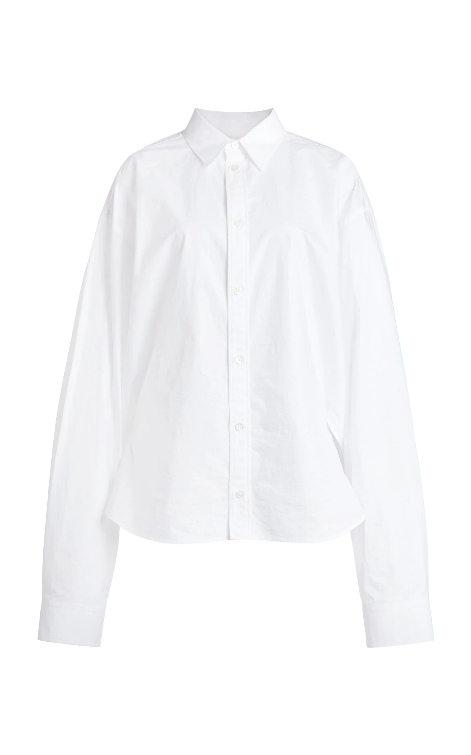 Experimental and minimalistic by design, Balenciaga is also renowned for its uncompromising standard and avant-garde creativity. With Creative Director Georgian designer Demna Gvasalia at its helm, the brand continues to live and breathe Balenciaga’s inherent elegance, balanced with the designer’s edgy, urban aesthetic. The Maison’s take on a classic white shirt is reinvented each season, delivering hard working staples. This cotton-poplin iteration is tailored for a closer fit at the front, relaxing towards the back. Layer over slim-cut pants for a polished look. PRODUCT DETAILS - Pre-Fall ‘25 - Button fastening - Composition: 100% regenerative cotton - Dry clean - Made in Italy