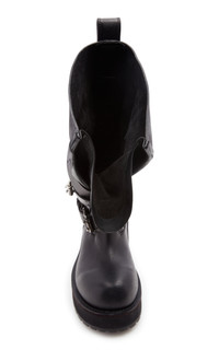 Experimental and minimalistic by design, Balenciaga is also renowned for its uncompromising standard and avant-garde creativity. With Creative Director Georgian designer Demna Gvasalia at its helm, the brand continues to live and breathe Balenciaga’s inherent elegance, balanced with the designer’s edgy, urban aesthetic. With signature exaggerated proportions, the 'Venom' biker boots are designed with a platform lug sole, gusseted shaft, and buckle-detailed straps. PRODUCT DETAILS - Slip on - Composition: calfskin leather - Made in Italy