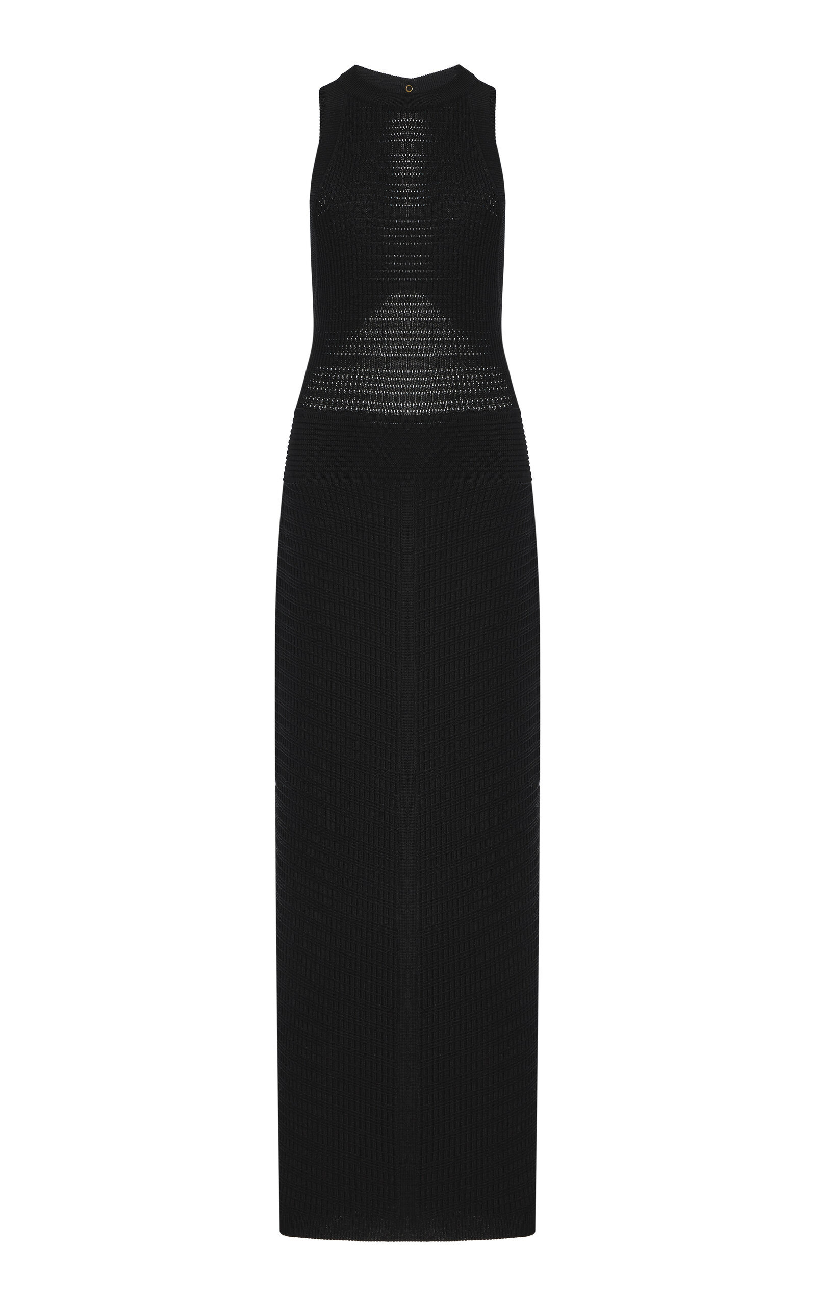 While Balmain has roots in Old Hollywood, its modern iteration is decidedly more edgy. Now helmed by creative director Olivier Rousteing, the designer aims to infuse the iconic brand’s signature Parisian style into each collection. Made with a crocheted construction, this maxi style has a figure-hugging column silhouette with an open back. PRODUCT DETAILS - Spring '25 - Snap fastening at back - Composition: 84% viscose, 16% polyester - Dry clean - Made in Italy SIZE & FIT - Our model is wearing a size FR 34 - Model is 5'10" with a 30" bust, 24" waist, and 34" hip - Designed for a slim fit