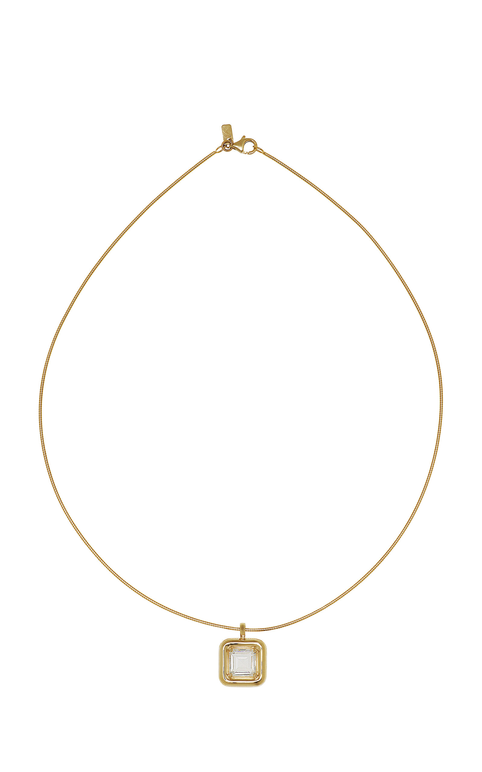 Milanese designer Bea Bongiasca's spirited and non-traditional take on fine jewelry stems from her passion for pop culture, contemporary art and design, and a deep love for everything colorful. With a focus on jewelry as an art form, each piece is handmade in Italy using 9k gold (so its price point remains accessible) fused with enamel to add kinetic movement. PRODUCT DETAILS - Lobster clasp - Composition: 9k yellow gold, 2.28ct rock crystal - Made in Italy - Please note the possibility of natural inclusions in gemstones SIZE & FIT - Item measures approximately 16" in length; Pendant: 0.5" x 0.5"