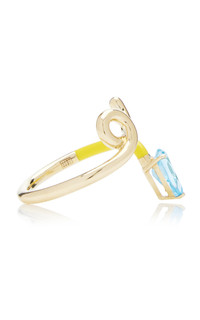 Milanese designer Bea Bongiasca's spirited and non-traditional take on fine jewelry stems from her passion for pop culture, contemporary art and design, and a deep love for everything colorful. With a focus on jewelry as an art form, each piece is handmade in Italy using 9k gold (so its price point remains accessible) fused with enamel to add kinetic movement. PRODUCT DETAILS - Composition: 9k yellow gold, 0.95ct blue topaz, enamel - Designer color: Sunflower - Made in Italy - Please note the possibility of natural inclusions in gemstones