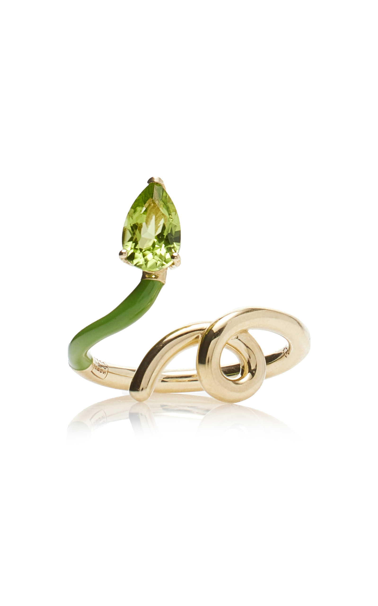 Milanese designer Bea Bongiasca's spirited and non-traditional take on fine jewelry stems from her passion for pop culture, contemporary art and design, and a deep love for everything colorful. With a focus on jewelry as an art form, each piece is handmade in Italy using 9k gold (so its price point remains accessible) fused with enamel to add kinetic movement. PRODUCT DETAILS - Composition: 9k yellow gold, 0.89 ct peridot, enamel - - Made in Italy - Please note the possibility of natural inclusions in gemstones