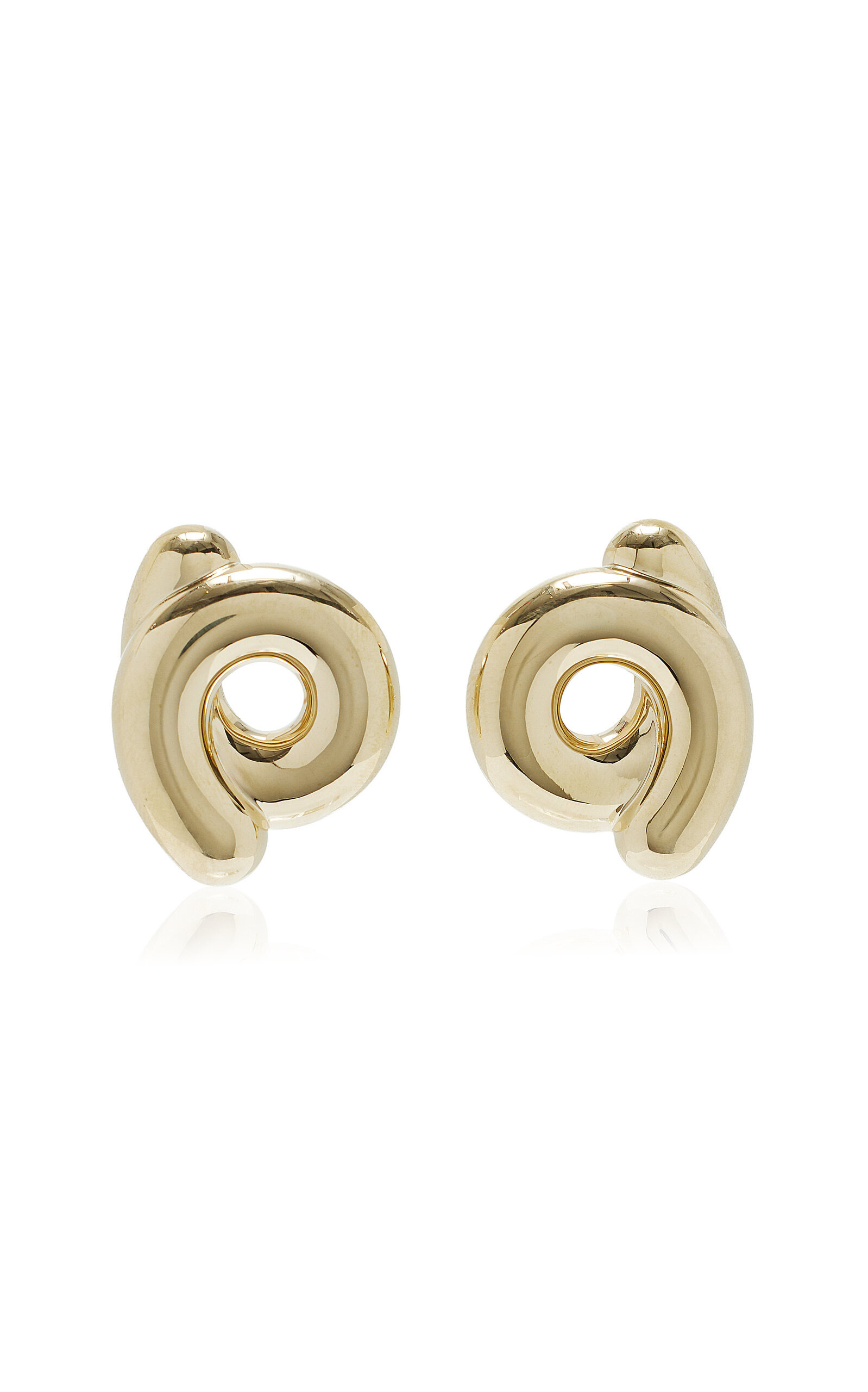 Milanese designer Bea Bongiasca's spirited and non-traditional take on fine jewelry stems from her passion for pop culture, contemporary art and design, and a deep love for everything colorful. With a focus on jewelry as an art form, each piece is handmade in Italy using 9k gold (so its price point remains accessible) fused with enamel to add kinetic movement. PRODUCT DETAILS - Post fastening for pierced ears - Composition: 9k yellow gold - Made in Italy SIZE & FIT - Item measures approximately 1 x 1"