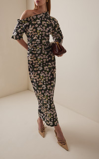 Bowery Off-The-Shoulder Buttercup-Print Cotton-Linen Maxi Dress floral