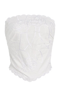 Helmed by Belgian mother-daughter duo Bernadette and Charlotte de Geyter, Bernadette is rooted in the special, delicacy-like allure of gorgeous, found vintage lingerie. This cotton handerchief top is adorned with delicate camellia-sequined embroidery and finished with signature scalloped details along the seams. It's designed with an adjustable back tie for a perfect fit. PRODUCT DETAILS - Pre-Fall '25 - Tie fastening at back - Composition: 100% cotton - Dry clean - Imported SIZE & FIT - Designed for a slim fit