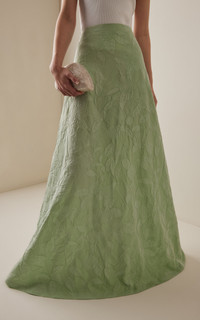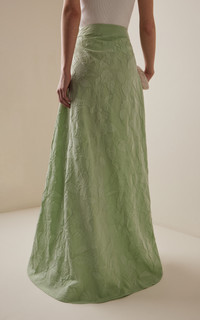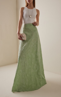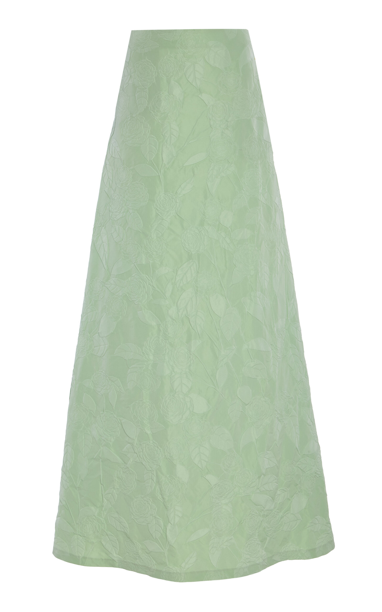 Helmed by Belgian mother-daughter duo Bernadette and Charlotte de Geyter, Bernadette is rooted in the special, delicacy-like allure of gorgeous, found vintage lingerie. This season's ankle-length skirt has a full A-line silhouette made from in-house drawn camilla-patterned jacquard. PRODUCT DETAILS - Pre-Fall '25 - Zip fastening - Composition: 100% polyester - Designer color: Mint - Dry clean - Imported SIZE & FIT - Our model is wearing a size FR 34 - Model is 5'10" with a 31" bust, 23.5" waist, and 33.5" hip - Designed for a slim fit