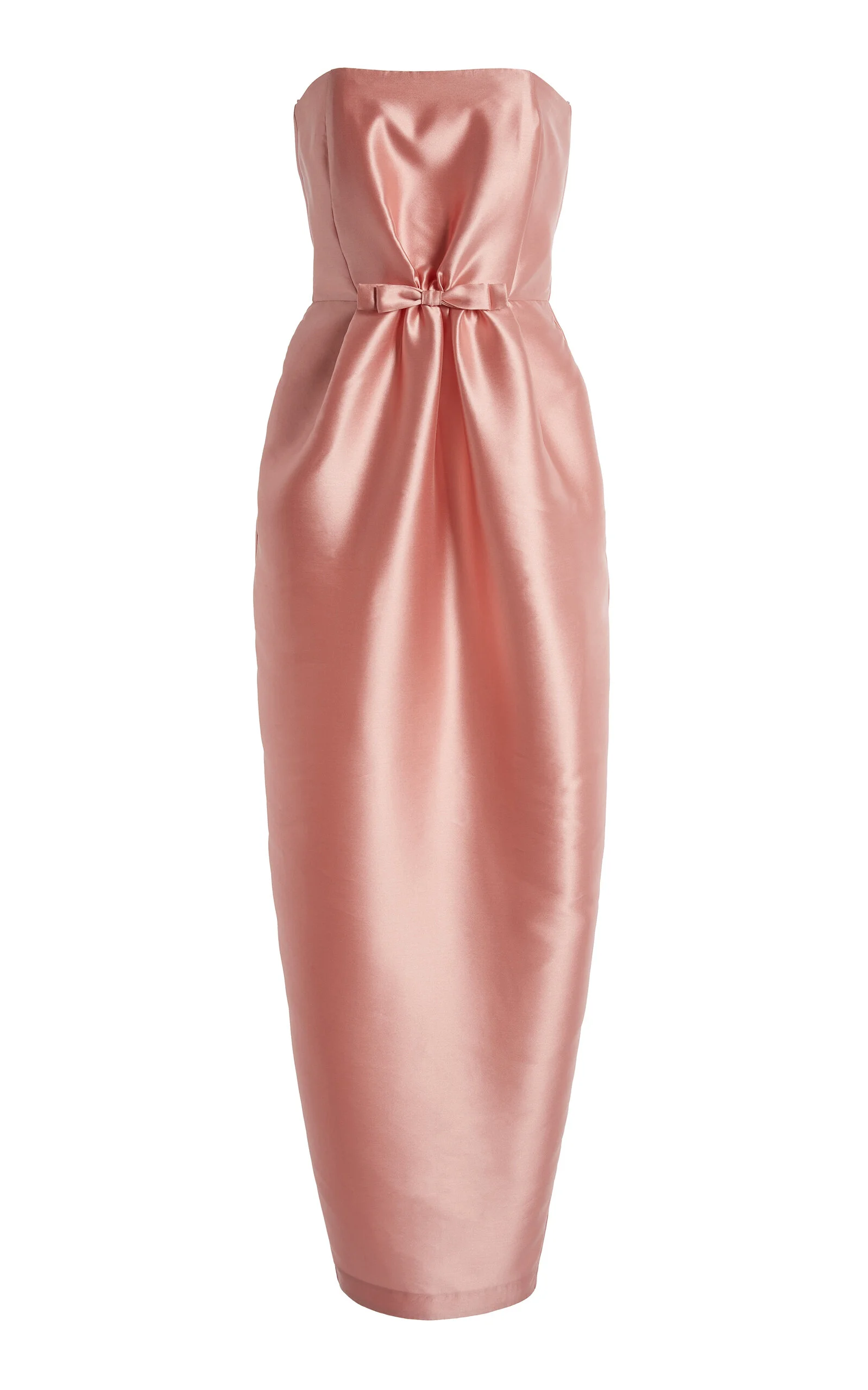 Helmed by Belgian mother-daughter duo Bernadette and Charlotte de Geyter, Bernadette is rooted in the special, delicacy-like allure of gorgeous, found vintage lingerie. Tailored from ‘Warm Pink’ satin, this maxi has a close-cut strapless bodice followed by a tulip skirt, with a ruched waist adding further texture. It finishes around the ankle, so select a pair of equally elegant pumps or heeled sandals. PRODUCT DETAILS - Resort ‘26 - Concealed zip fastening - Composition: 85% polyester, 15% silk - Dry clean - Designer Color: Warm Pink - Imported SIZE & FIT - Fits small to size; if you are in-between sizes, we recommend taking one size larger - Designed with a slim fit around the bust and through the waist