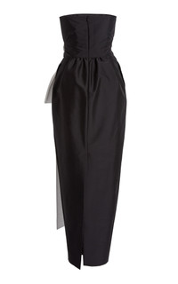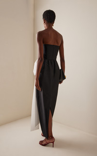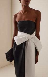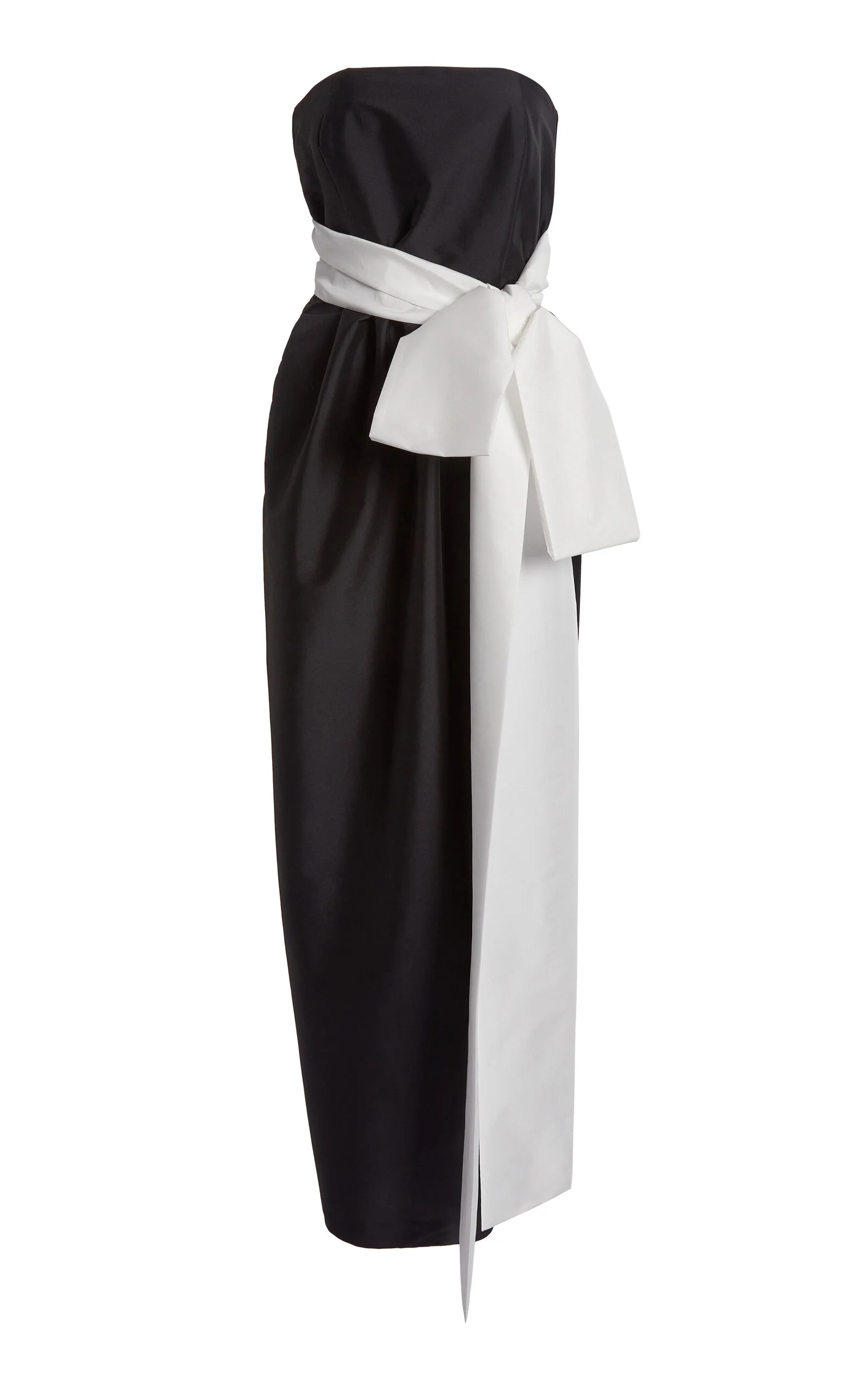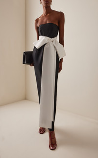 PRODUCT DETAILS - Slim fit, strapless neckline, with an oversized ribbon tied by the waist, column silhouette maxi - Zip Fastening Through Back - Lined - Composition: 78% PL 20% PA 2% EA - Color: BLACK/WHITE - Dry Clean Only - Resort '26