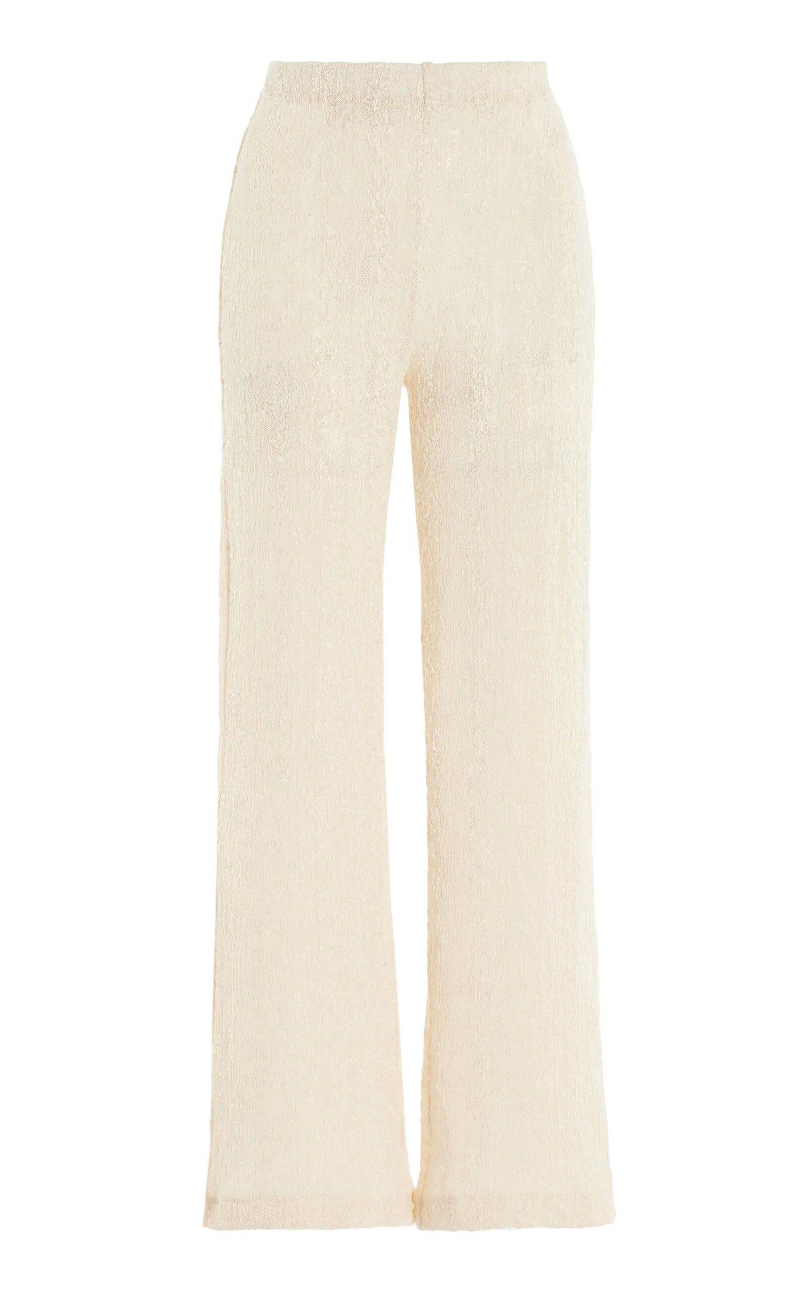 Founded by Swedish husband-and-wife team William Lundgren and Veronika Kant, BITE (or ‘By Independent Thinkers for Environmental Progress’) Studios marries uncompromising quality with organic, low-impact textiles. The 'Whisper' pants are crafted from intricate, sheer organic cotton lace into a cropped, flared silhouette. PRODUCT DETAILS - Pre-Fall '24 - Pull on - Composition: 93% Organic Cotton, 7% Polyamide - Dry clean - Imported SIZE & FIT - Our model is wearing a size Small - Model is 5’10" with a 31.5" bust, 23.5" waist, and 35" hip - Designed for a relaxed fit
