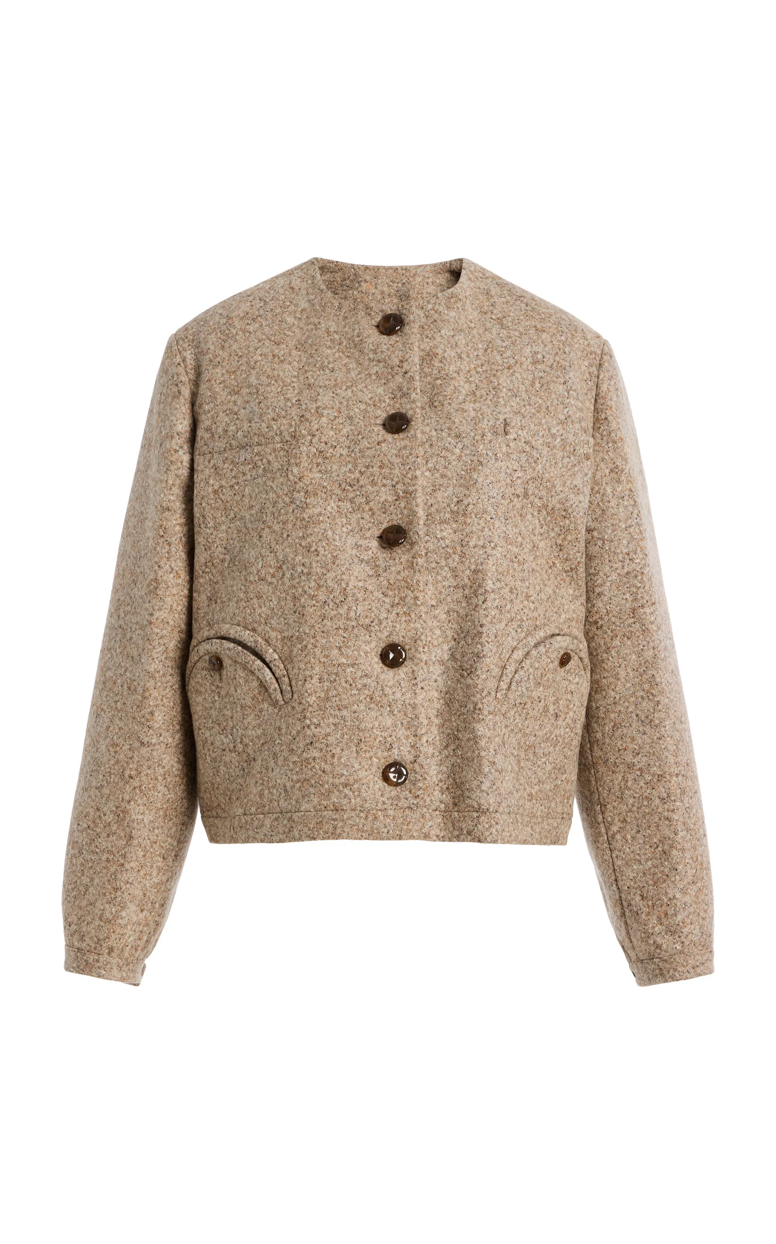 Blazers are a wardrobe essential—and those by the Milan-based trio of former fashion editors have been honed and perfected, season after season, to ensure they're a cut above the rest. Whichever you choose—you can’t go wrong. This bolero jacket has an oversized fit – in fact, it fits a size larger, like all Gliss Bolero models. In a beige virgin wool/alpaca blend, this warm, soft jacket has lightly padded shoulders and signature 'Smiley' pockets. PRODUCT DETAILS - Resort '26 - Button fastening - Composition: 66% alpaca, 34% virgin wool - Dry clean - Made in Italy