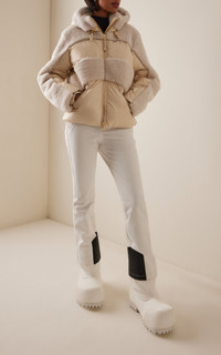 A true "Athluxury" pioneer, Bogner has been an innovator in the sportswear world for over 90 years — it's even credited with inventing the first pair of ski pants. Today, the label is known for its ski apparel that combines traditional craftsmanship with cutting-edge functionality. Made from subtly shiny taffeta, the 'Dana' jacket features lambskin shearling panels and a warm down filling. It's detailed with two zipped side pockets, an elastic drawstring hem, a ski pass pocket, knitted cuffs, snow skirt with press studs and a zipped pocket inside. PRODUCT DETAILS - Suitable for sporting conditions - Zip fastening - Composition: 100% recycled polyamide; Trim: lambskin; Filling: 90% goose down, 10% goose feathers - Designer color: Birch - Dry clean - Imported SIZE & FIT - Our model is wearing a size 4 - Model is 5’10” with a 31” bust, 23.5” waist, and 33.5” hip