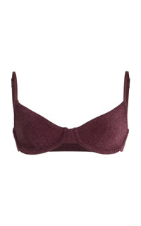 Bond-Eye is the embodiment of the iconic Australian summer spirit. Designed and handmade in Bondi, the label crafts considered and flattering swimwear from the signature one-size tubular crinkled fabric made famous in the 80s. The ‘Gracie’ balconette boasts shallow wired cups and a slim under band that slips on easily over the frame. The straps are adjustable to help you reach your desired level of support. PRODUCT DETAILS - Resort ‘26 - Slip on - Composition: 85% nylon, 10% lurex®, 5% Lycra - Hand wash - Designer Color: Amarena - Made in Australia SIZE & FIT - One size only. This style comfortably fits those who are between a size XSmall-Large - Model is 5'9.5" with a 32" bust, 24" waist, and 35.5" hip