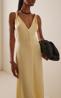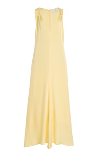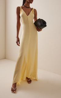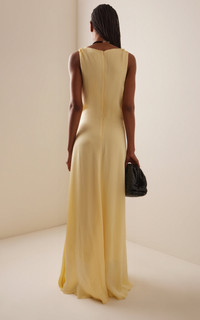 Ardea Twist-Shoulder Hammered-Satin Maxi Dress yellow