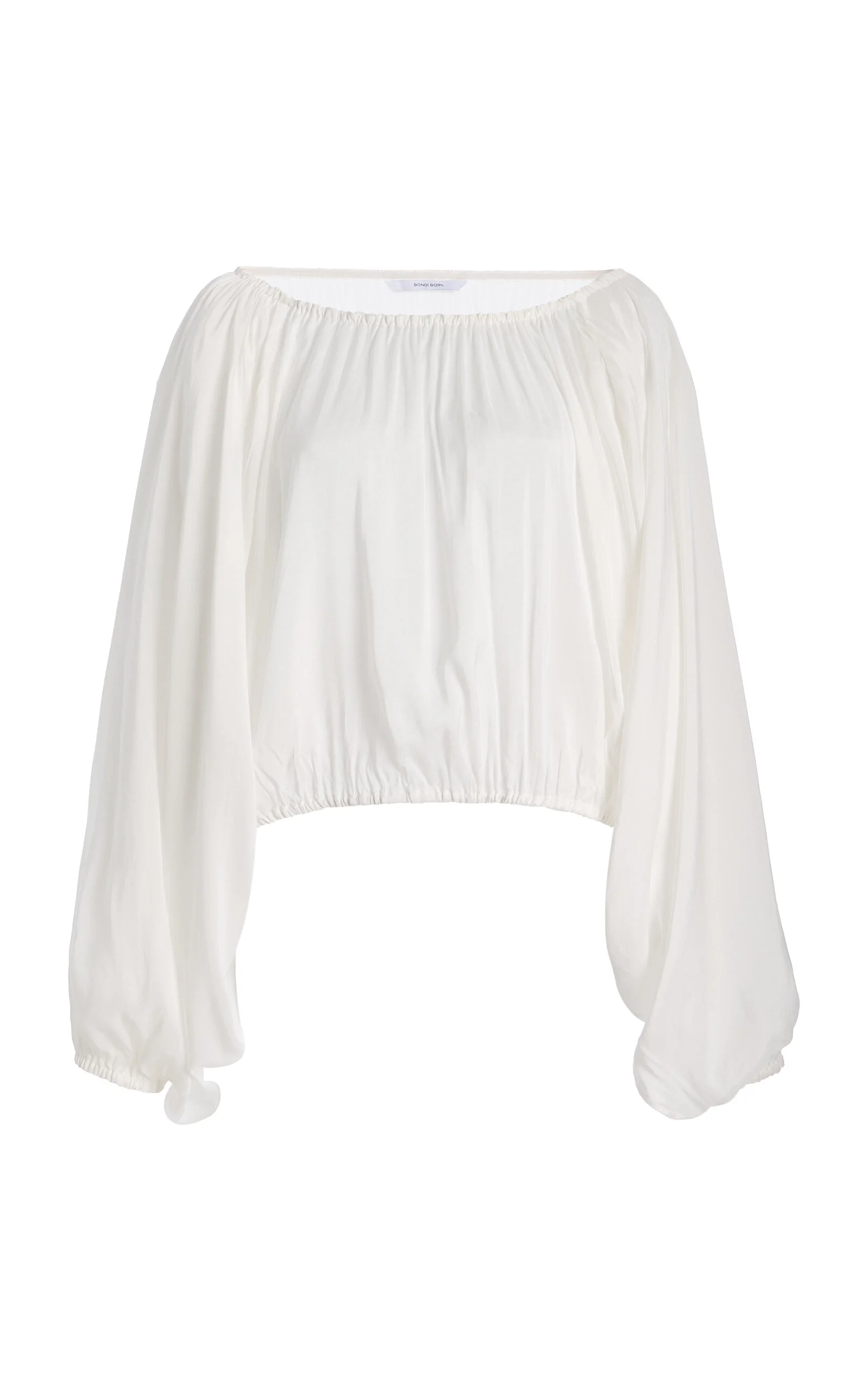 This season, Australian Natalia Grzybowski continues to flex her eye for ultra-flattering cuts that elevate fuss-free designs to chic, seductive heights—without compromising on sustainability. The ‘Cremona’ top is tailored from airy pleated chiffon, designed in a voluminous cropped silhouette with a gathered wide neckline and dramatic balloon sleeves. PRODUCT DETAILS - Spring '26 - Pulls on - Composition: 51% Rayon 49% Viscose - Designer color: White - Dry clean - Imported SIZE & FIT - Our model is wearing a size Small - Our model is 5'10" with a 30" bust, 24" waist, and 34" hip