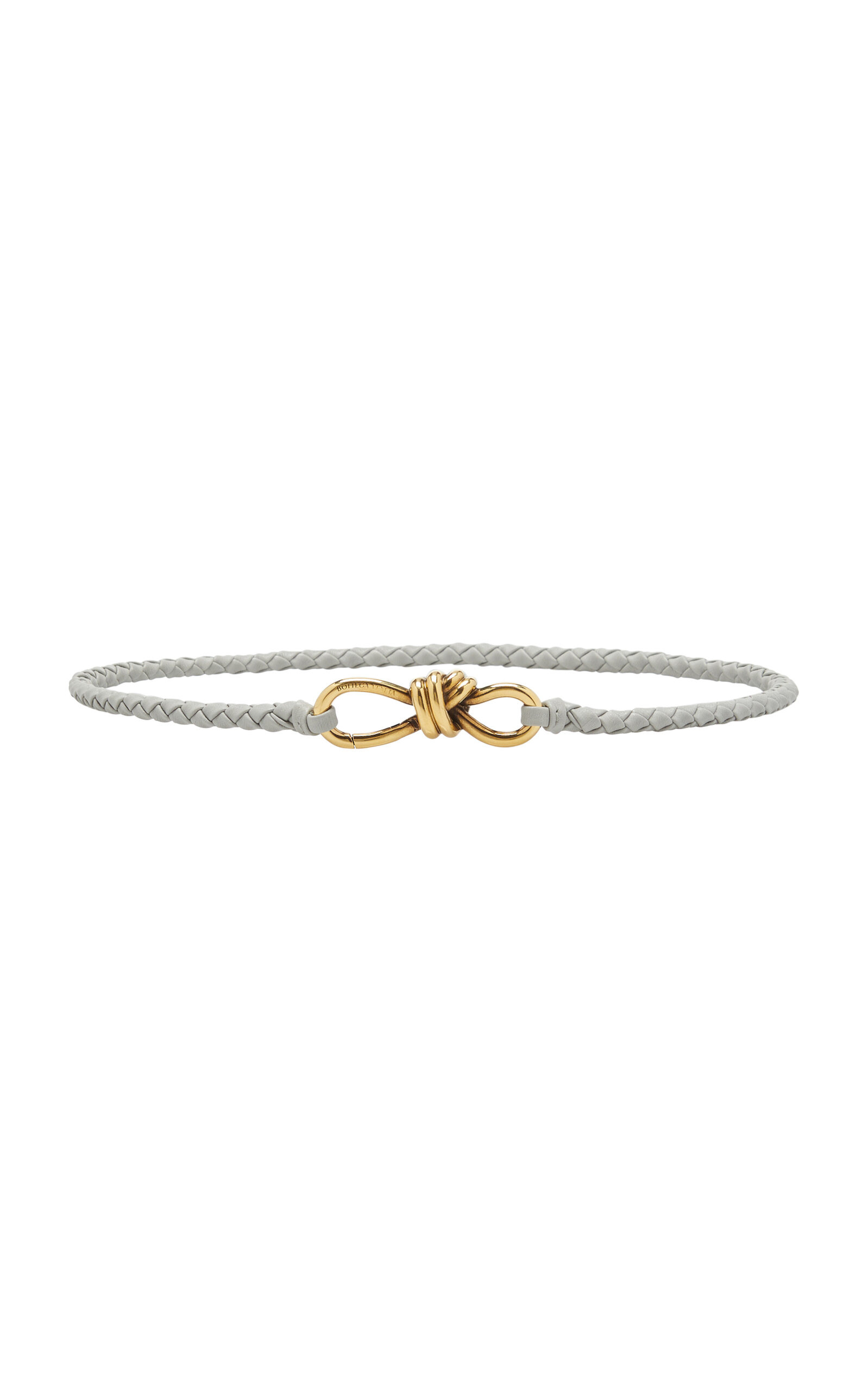 Since his debut, designer Matthieu Blazy has leaned into Bottega Veneta's foundations, delivering new iterations of house signatures. The 'Andiamo' is a thin elastic belt made from intreccio leather that fastens with a signature brass knot. PRODUCT DETAILS - Clasp fastening - Composition: nappa leather - Designer color: Agate - Made in Italy SIZE & FIT - Width measures approximately 9mm/ 0.35"