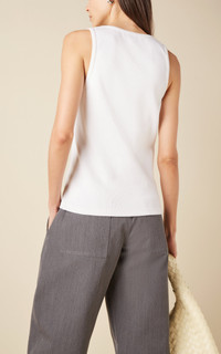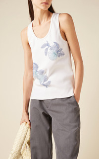 For Bottega Veneta's Fall '23 show, Matthieu Blazy delivered with a collection that ups the fashion ante while simultaneously delivering real-life wearability. This scoop-neck top has a clean-lined tank silhouette made from ribbed cotton jersey decorated with floral beading. Wear it with everything from denim to evening skirts. PRODUCT DETAILS - Slip on - Composition: 100% cotton - Designer color: Chalk - Dry clean - Made in Italy SIZE & FIT - Model is wearing a size Small - Designed for a slim fit