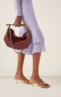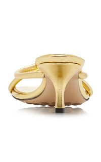 Since his debut, designer Matthieu Blazy has leaned into Bottega Veneta's foundations, delivering new iterations of house signatures. Made from metallic lambskin, the 'Blink' sandals feature interlacing tubular straps recalling the signature knot. The rubber-injected outsole adds a comfortable feel. PRODUCT DETAILS - Resort '24 - Heel height measures 50mm/ 2" - Slip on - Composition: reflective lambskin leather - Made in Italy