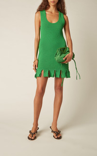 Carwash-Hem Cotton-Blend Mesh Mini Dress green