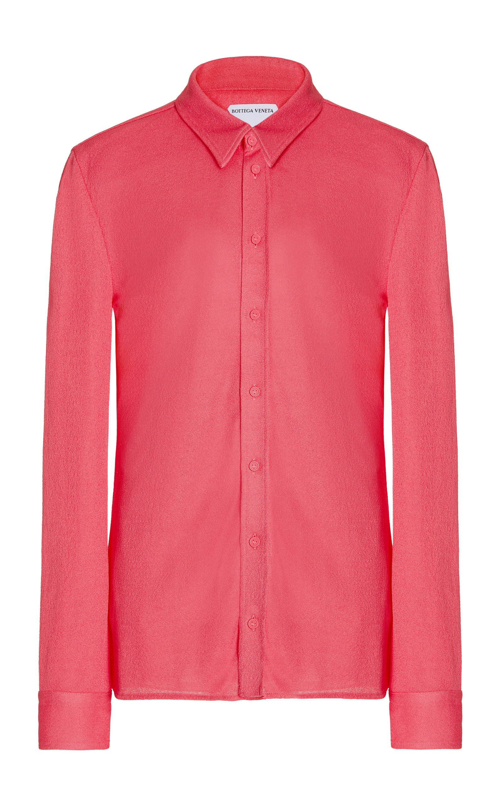From knitted suiting sets to a colorful update on cult hit accessories, Bottega Veneta's newest collection puts a high fashion lens on everyday luxury — one that's ready for a new reality. Fashioned of jersey sable, this button down shirt is bright and easy to wear. Pair yours with the brand's tailored wool pants for a look that's high-contrast and chic. PRODUCT DETAILS - Button fastenings along front - Composition: jersey sable - Dry clean - Imported SIZE & FIT - Our model is 180cm / 5'11"and is wearing a IT 38 - Fits small to size, our fit specialist recommends taking one size up