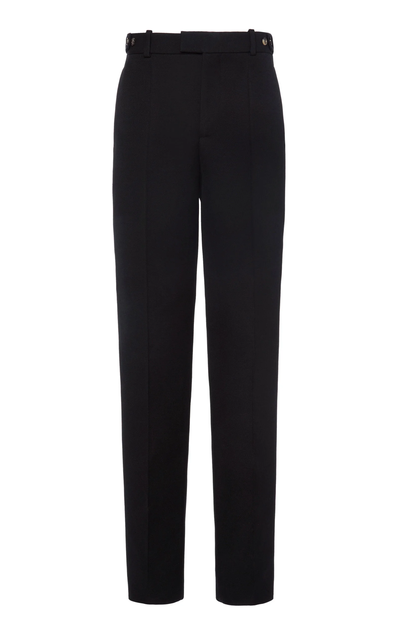 From knitted suiting sets to a colorful update on cult hit accessories, Bottega Veneta's newest collection puts a high fashion lens on everyday luxury — one that's ready for a new reality. Made of grain de poudre wool, these straight-leg pants have buttoned tabs at the waist and a sleek silhouette. Pair yours with Bottega Veneta's wool jacket for a look that's classically chic. PRODUCT DETAILS - Concealed zip fastening along front - Composition: grain de poudre wool - Dry clean - Imported SIZE & FIT - Our model is 180cm / 5'11"and is wearing a IT 38 - This style fits true to size - We suggest taking your usual size