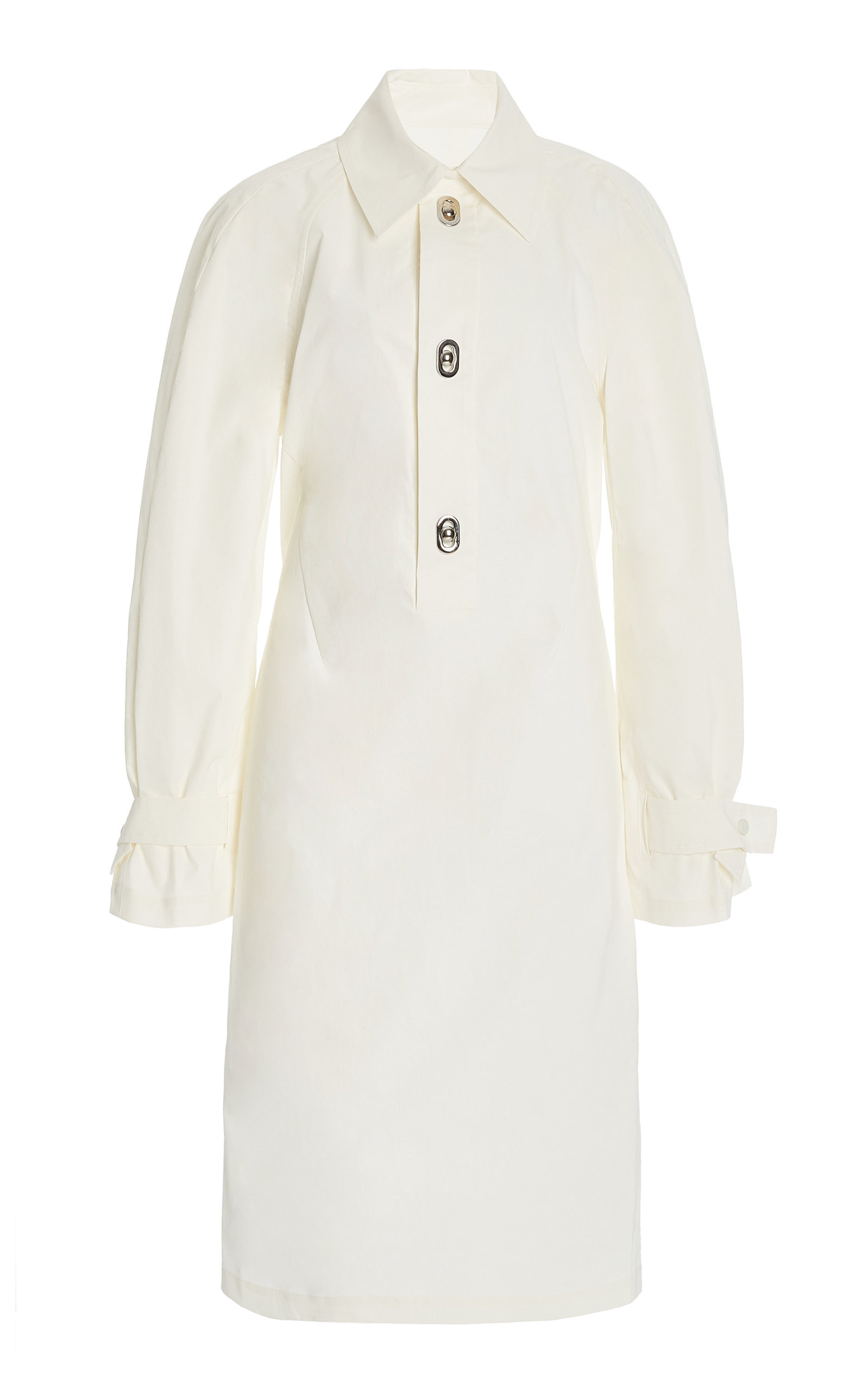 Bottega Veneta's shirt dress is decorated with silver-tone metal sliders along the placket -- a signature detail from the fall collection that nods to the opulent door handles found in Milan. It's cut from a crisp coated cotton-blend poplin into a straight cut with a nipped in waist. Accessorize with one of the label's intrecciato bags. PRODUCT DETAILS - Button fastenings along front - Composition: 90% cotton, 10% polyurethane - Dry clean - Made in Italy SIZE & FIT - This style fits true to size - We suggest taking your normal size