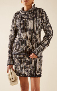 Stepping away from reinventing house codes, Bottega Veneta Creative Director Matthieu Blazy left Italy in search of inspiration for Spring '24. "The idea was blending worlds. We took inspiration literally from all around the world: South America, Southeast Asia, Russia, Brittany, Sicily . . . we tried to blend them to create some kind of new culture," he told Vogue of the collection. A design innovation, this crewneck sweater is made from cotton knit to resemble the house's iconic intrecciato weave. Pair it with the matching skirt. PRODUCT DETAILS - Spring '24 - Slip on - Composition: 100% cotton - Designer color: Navy/ Dove - Dry clean - Made in Italy SIZE & FIT - Our model is 178cm/ 5'10" and wearing a size Small - Designed for a relaxed fit