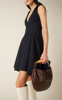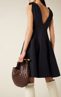 Fall '22 marks Matthieu Blazy's official debut as the Italian label's creative director (he was formerly the ready-to-wear director after stints at Balenciaga, Calvin Klein, and Celine). Leaning into the brand's foundations, he delivers new iterations of house signatures. Fringe and sparkle bring textural intrigue to occasionwear, while apparent basics are actually anything but. Cut from compact cotton canvas, this mini features a full circle skirt and a fitted V-neckline with knotted shoulder straps. Try it with a thin logo belt from the label. PRODUCT DETAILS - Concealed zip fastening along back - Composition: cotton - Dry clean - Made in Italy SIZE & FIT - Model is wearing an IT 38 - Fits true to size, our fit specialist recommends taking your normal size - Designed for a slim fit