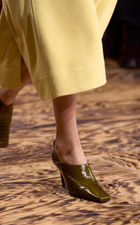 PRODUCT DETAILS - Pump silhouette, croc-effect leather body, tapered toe, block heel - Composition: croc-effect calfskin - Made in Italy