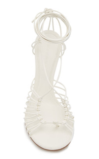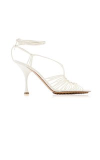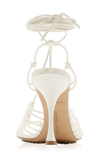 Bottega Veneta's '90s minimalist footwear has become a cult favorite. The updated 'Dot' lace-up sandals from Resort '22 are made from knotted strips of smooth lambskin leather that give it a barely there feel. The gripped rubber soles add extra comfort and support. PRODUCT DETAILS - Heel measures approximately 100mm/ 4 inches - Tie fastening at ankle strap - Composition: lambskin leather - Made in Italy