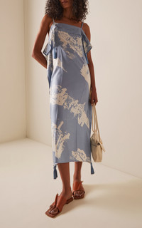 Bottega Veneta (meaning "Venetian Artisanal Workshop" in its native Italian) unites different people, ideas, and perspectives with an unwavering commitment to excellence and a unique vision of luxury. With solid foundation, each season builds off the other, delivering new iterations of coveted house signatures with contemporary, yet timeless, flare. Crafted from flowing silk-cotton blend, this midi dress features cascading drapery finished with dangling tassel embroidery PRODUCT DETAILS - Pre-Fall '25 - Concealed zip fastening - Composition: 75% Silk, 25% Cotton - Designer color: Blue/Dove - Dry clean - Made in Italy SIZE & FIT - Designed for a slim fit