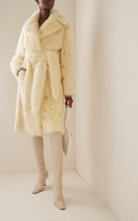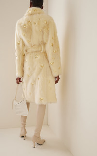 Fall '22 marks Matthieu Blazy's official debut as the Italian label's creative director (he was formerly the ready-to-wear director after stints at Balenciaga, Calvin Klein, and Celine). Leaning into the brand's foundations, he delivers new iterations of house signatures. Fringe and sparkle bring textural intrigue to occasionwear, while apparent basics are actually anything but. This ultra luxurious coat is made from shearling specked with gold-tone hardware. Wear it over a simple slip. PRODUCT DETAILS - Slip on - Composition: 100% lambskin - Designer color: Camomile - Specialist clean - Made in Italy SIZE & FIT - Our model is 180cm / 5'11 and is wearing a IT 38 - Fits true to size, our fit specialist recommends taking your normal size