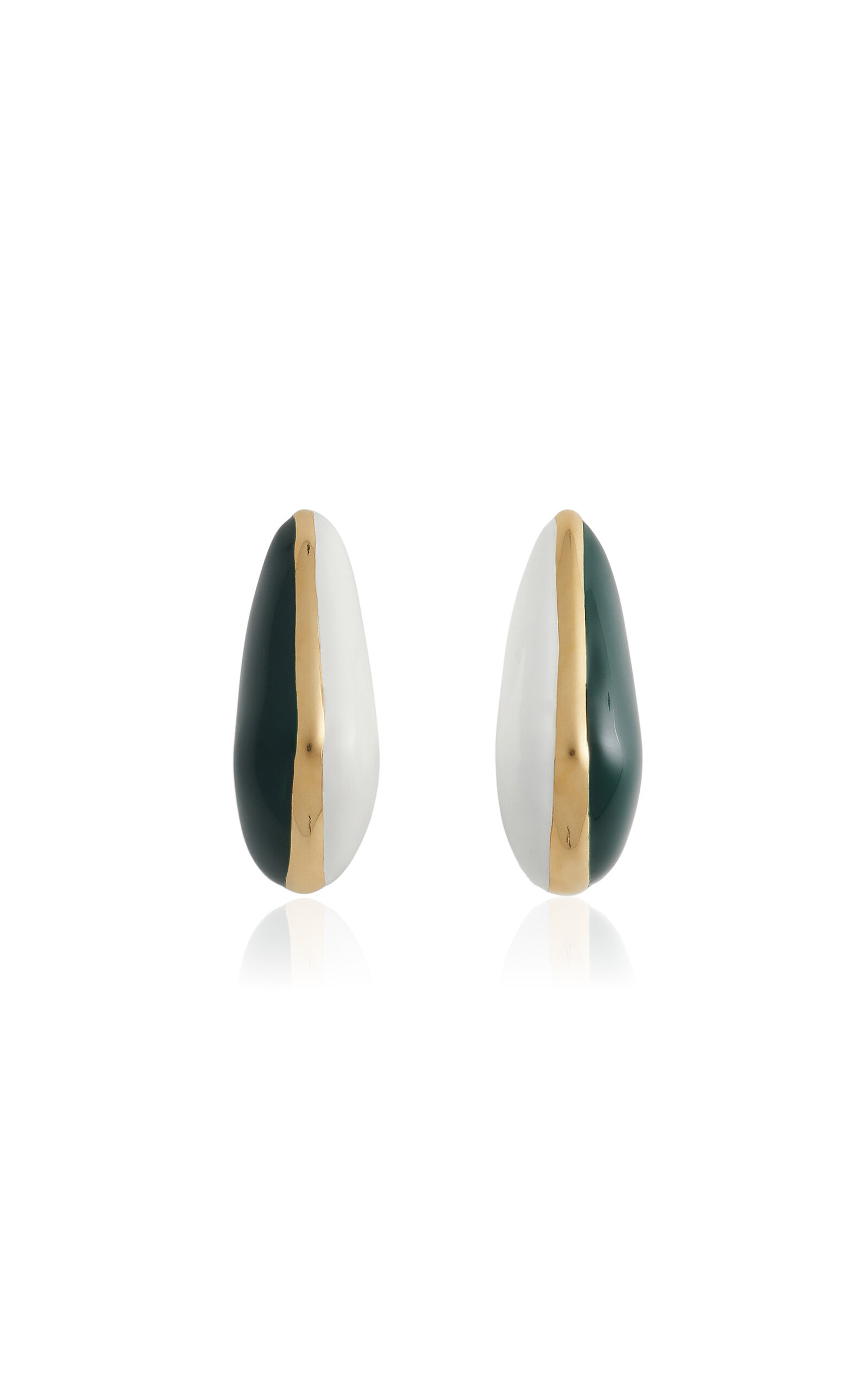 Since his debut, designer Matthieu Blazy has leaned into Bottega Veneta's foundations, delivering new iterations of brand signatures. These lobe-hugging earrings are crafted from 18k gold-finished sterling silver painted and enameled for its design. PRODUCT DETAILS - Post fastening for pierced ears - Composition: 18k gold-finished sterling silver - Made in Italy