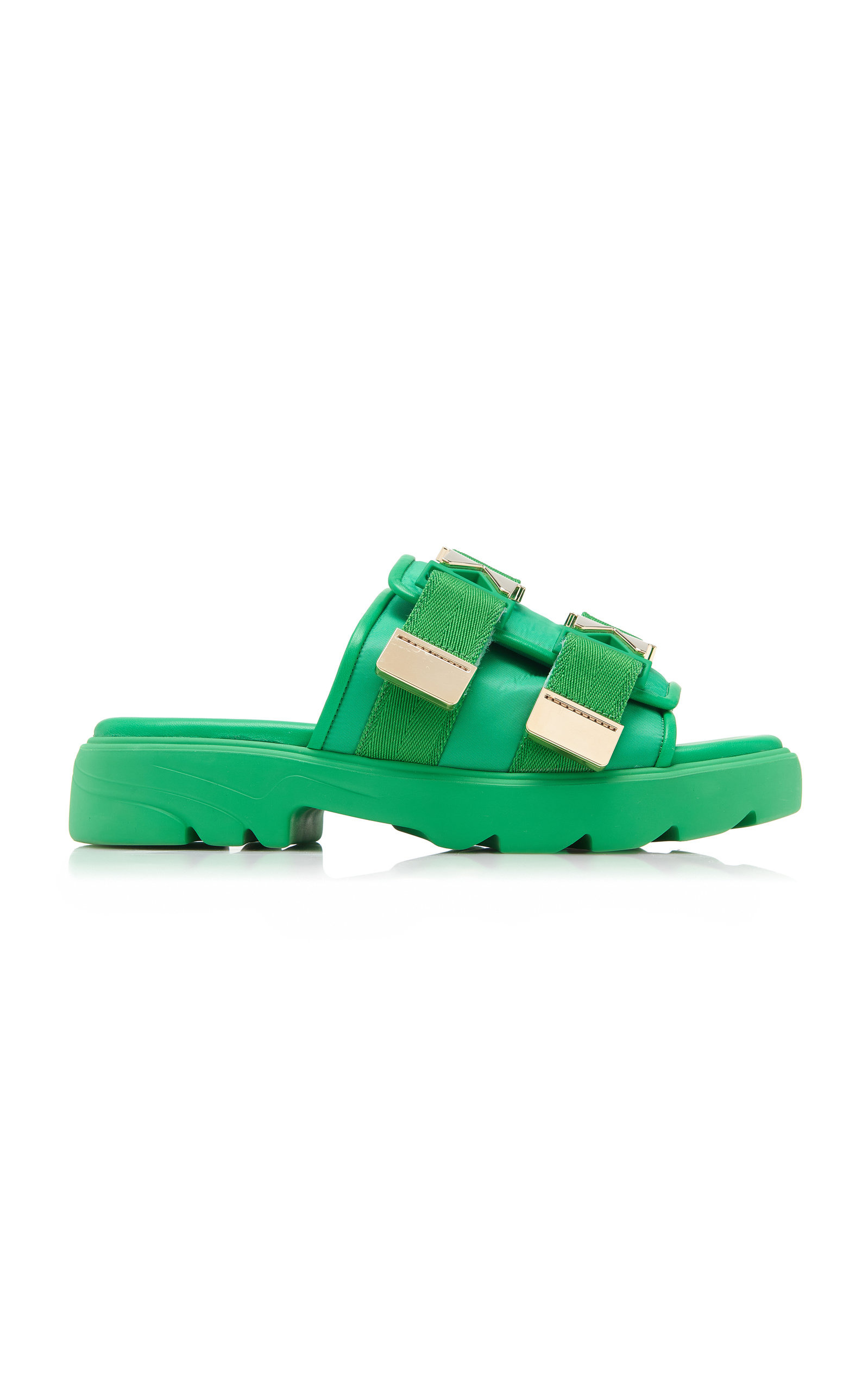Flash Buckled Leather and Rubber Sandals green