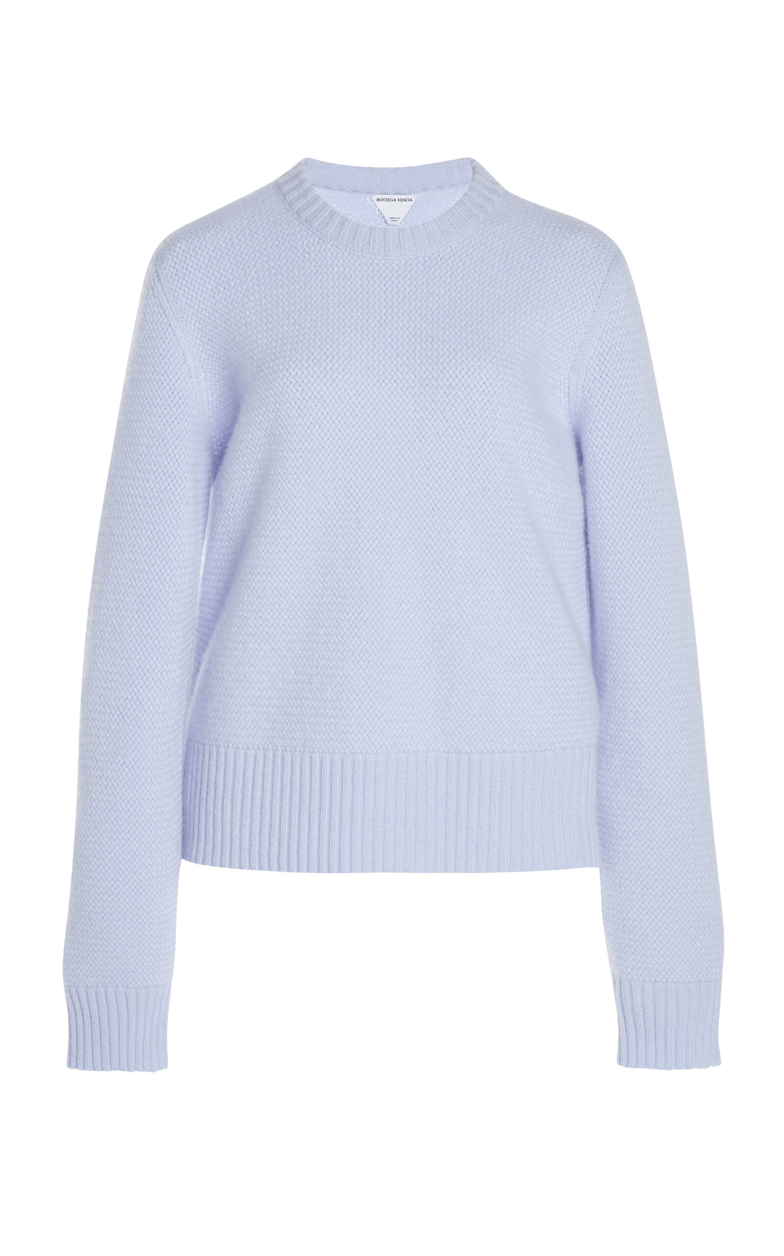 For Resort '25, Matthieu Blazy sets his sights on elevating the everyday — it is a lesson in balancing opulence and ease. This seemingly simple sweater is made from sumptuous cashmere knit with an intrecciato weave. PRODUCT DETAILS - Resort '25 - Slip on - Composition: 100% cashmere - Designer color: Saline - Dry clean - Made in Italy SIZE & FIT - Designed for a regular fit