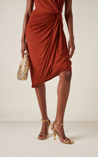 Since his debut, designer Matthieu Blazy has leaned into Bottega Veneta's foundations, delivering new iterations of house signatures. Made from metallic lambskin, these sandals feature a signature gold-plated metal knot heel with a bio-based rubber injected leather outsole. PRODUCT DETAILS - Resort '24 - Heel height measures 90mm/ 3.5" - Buckle fastening - Composition: reflective lambskin leather - Made in Italy