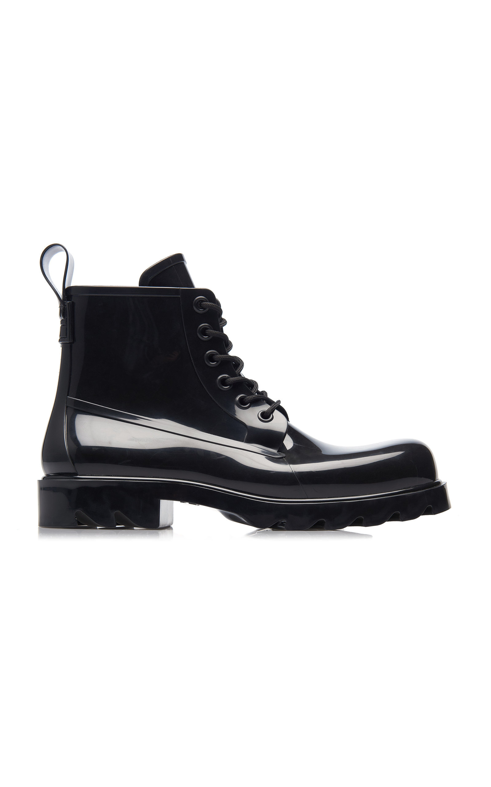 From knitted suiting sets to a colorful update on cult hit accessories, Bottega Veneta's newest collection puts a high fashion lens on everyday luxury — one that's ready for a new reality. Ideal for inclement days, these lace-up boots are made from spongy matte rubber (that's oh so comfortable) set atop thick lug soles for traction. Pair with the 'Pouch' bag in a matching shade. PRODUCT DETAILS - Heel height measures approximately 30mm/ 1.2"; Platform height measures approximately 20mm/ 0.8" - Pull on - Composition: rubber - Made in Italy