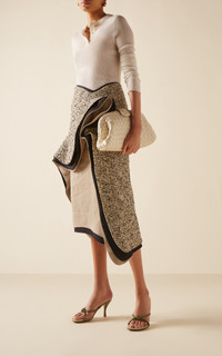 Stepping away from reinventing house codes, Bottega Veneta Creative Director Matthieu Blazy left Italy in search of inspiration for Spring '24. "The idea was blending worlds. We took inspiration literally from all around the world: South America, Southeast Asia, Russia, Brittany, Sicily . . . we tried to blend them to create some kind of new culture," he told Vogue of the collection. A masterful work of art, this knee-length skirt is made from three layers of a cotton-blend finished with edges that swirl and curve around the body. PRODUCT DETAILS - Spring '24 - Concealed zip fastening along back - Composition: 60% cotton, 18% acrylic, 11% silk, 10% polyamide, 1% elastane - Designer color: Yellow/ Chalk/ Black - Dry clean - Made in Italy SIZE & FIT - Our model is 178cm/ 5'10" and wearing a size IT 38 - Designed for a slim fit