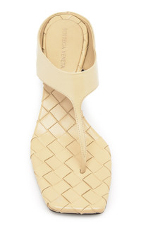 Since his debut, designer Matthieu Blazy has leaned into Bottega Veneta's foundations, delivering new iterations of brand signatures. Set on a midi block heel, these square-toe sandals have a thong silhouette made from smooth leather set on an intrecciato-woven footbed. The rubber-gripped soles ensure easy footing. PRODUCT DETAILS - Heel height measures 45mm/ 1.75" - Slip on - Composition: nappa leather - Designer color: Butterscotch - Made in Italy