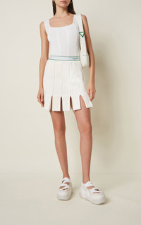 More than just the show's location, Detroit permeated Bottega Veneta's latest collection. With metal-threaded outerwear, shiny sequins and industrial accents seen throughout, Spring '22 took full inspiration from the motor city's remarkable golden age. With an elastic waistband and multiple vents along the hem, this mini skirt is easy to wear and versatile. Pair yours with a bodysuit and platform sandals for a casual weekend look. PRODUCT DETAILS - Slip on - Composition: 81% viscose, 17% elastane, 2% nylon - Made in Italy SIZE & FIT - This style fits true to size - We recommend taking your usual size