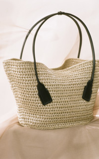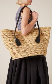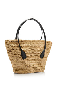 Since his debut last year, designer Matthieu Blazy has leaned into Bottega Veneta's foundations, delivering new iterations of house signatures. This medium sized 'Arco' tote is made from crochet raffia with leather handles. It has an oversized silhouette defined by the directional hand tag straps that have become its signature. Use it to store all your beach essentials. PRODUCT DETAILS - Secure the straps with the adjustable tab - Open top - Composition: raffia, leather - Made in Italy SIZE & FIT - This item measures approximately 9.8 x 16.1 x 5.5"