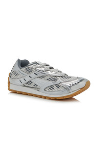 Since his debut, designer Matthieu Blazy has leaned into Bottega Veneta's foundations, delivering new iterations of house signatures. Inspired by classic trainers, these low-top sneakers feature a metallic leather construction with fishnet webbing taking the place of the mesh you typically find on athleticwear. The thick rubber soles make them endlessly comfortable. PRODUCT DETAILS - Lace-up fastening - Composition: technical fishnet - Made in Italy