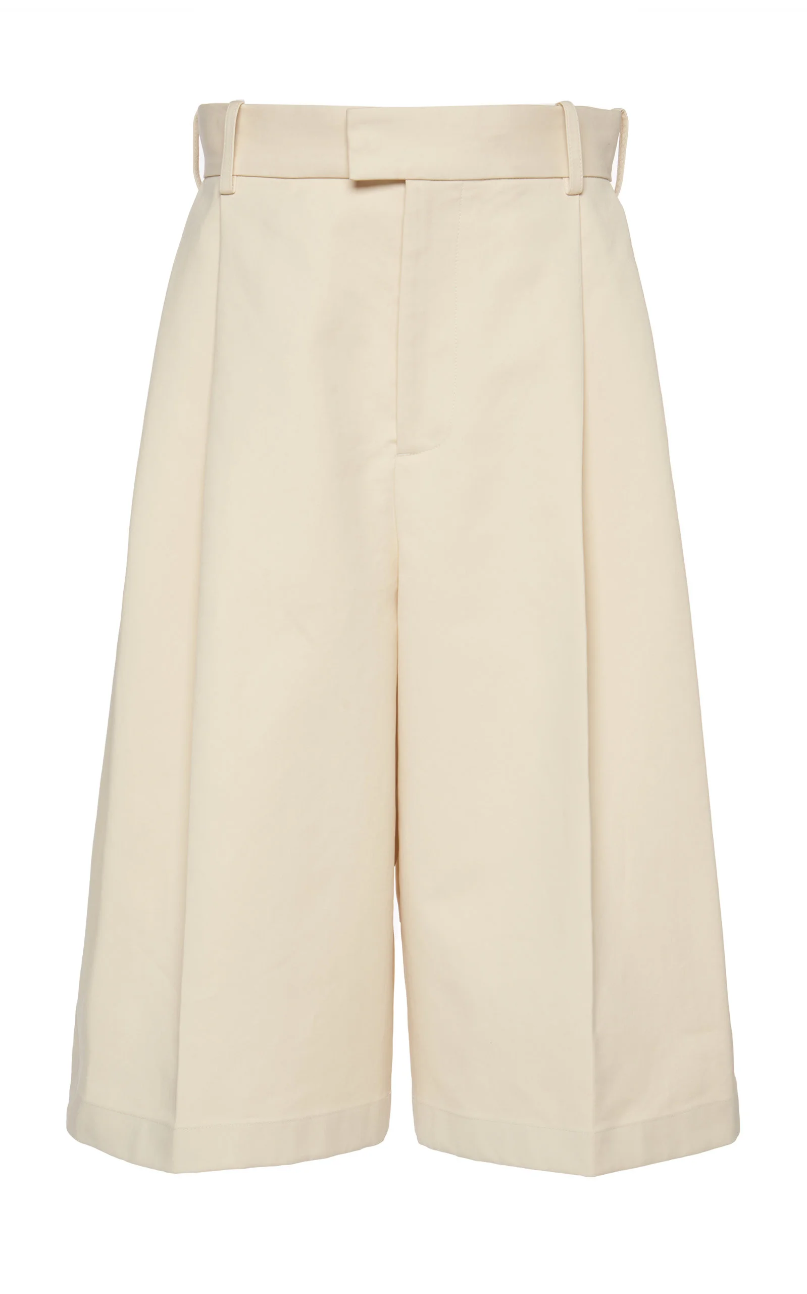 Bottega Veneta's Resort '21 collection emerged from this pandemic as a must-have, championing sculpted silhouettes with an emphasis on functionality. These pleated cotton shorts are tailored for a relaxed fit, featuring a high-rise waist and knee-length hemline—style yours with a button-down shirt to complete the look. PRODUCT DETAILS - Button fastenings through front - Composition: double cotton - Dry clean - Made in Italy SIZE & FIT - This style fits true to size - We suggest taking your normal size