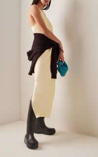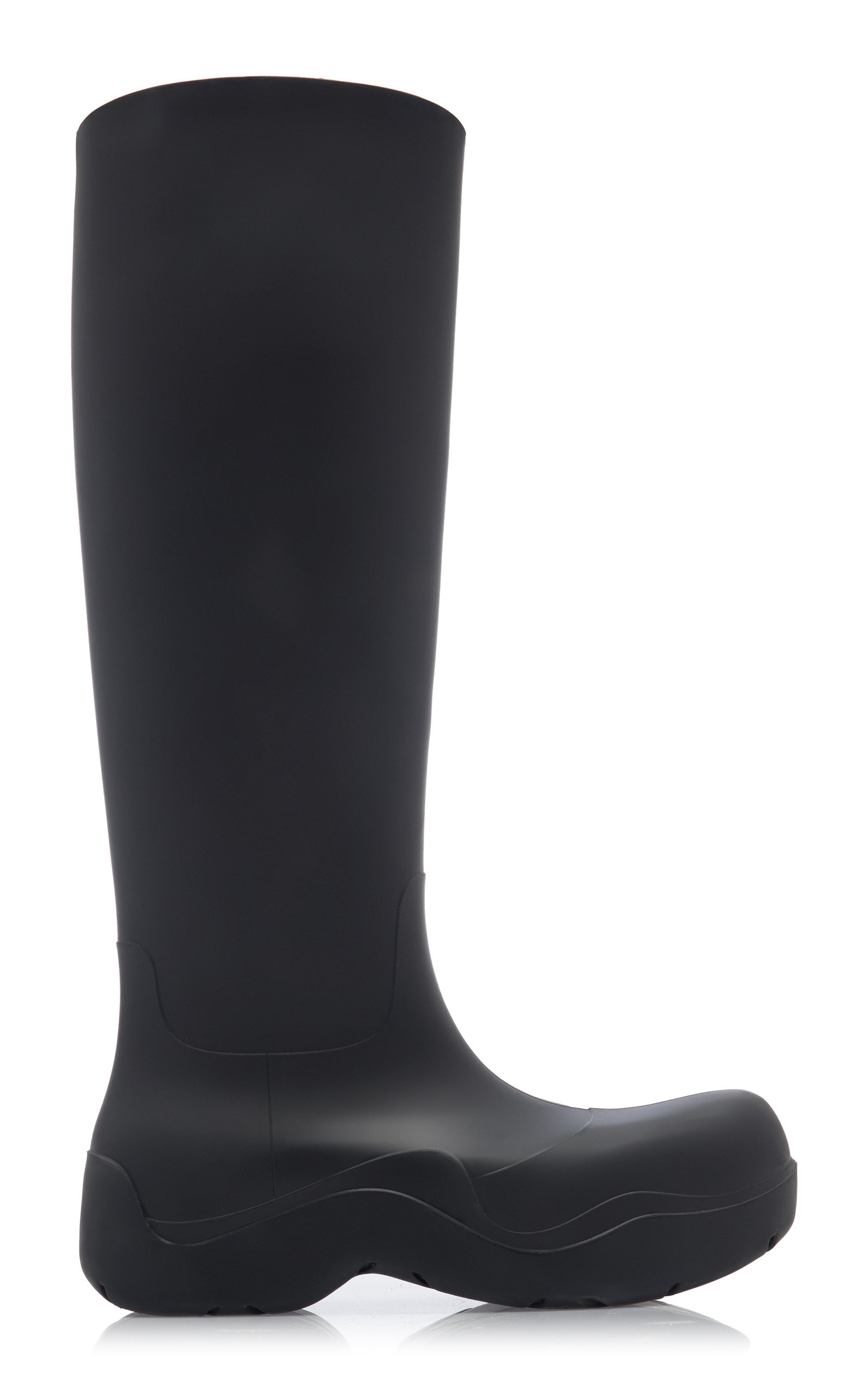 From knitted suiting sets to a colorful update on cult hit accessories, Bottega Veneta's newest collection puts a high fashion lens on everyday luxury — one that's ready for a new reality. These aptly titled 'Puddle' boots have a tall silhouette made from water-resistant matte rubber to protect against the elements. Wear them to dress down your favorite Bottega looks on inclement days. PRODUCT DETAILS - Heel height measures approximately 40mm/ 1.6"; Platform height measures approximately 30mm/ 1.2" - Pull on - Composition: rubber - Made in Italy