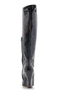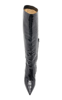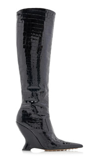 Since his debut last year, designer Matthieu Blazy has leaned into Bottega Veneta's foundations, delivering new iterations of house signatures. From the sculptural heel to the sharp pointed toe, these sleek knee-high boots are cast from glossy croc-embossed leather. Style yours for both work and play. PRODUCT DETAILS - Heel height measures approximately 100mm / 4" - Zip fastening along side - Composition: 100% embossed calfskin leather - Leather specialist - Made in Italy